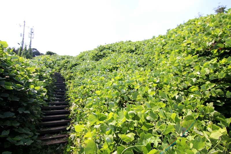 밭을 지나 계단을 오른 후 다시 조심히 내려오면 새우양식장을 만나게 됩니다. 그 둘레따라 걸으면 쉼터나 가타나고 펜션으로 이어집니다.
