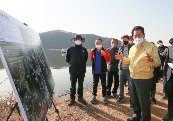 시는 오는 2023년까지 연차적으로 예산을 확보해 3단계에 걸쳐 약 13km에 달하는 친환경 둘레길을 조성할 방침이다. 올해는 수변 쉼터 1곳을 포함 송전1교~묘뵹2리 2km 구간(제1단계)을 둘레길로 조성한다.