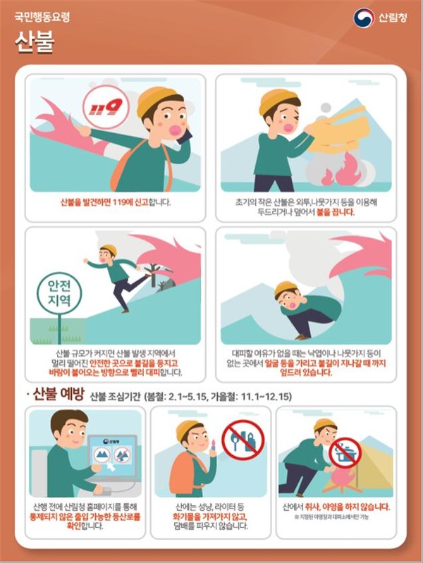 ① 산불 위험이 높아 입산이 통제되거나 폐쇄된 곳은 산림청 누리집 등을 통해 미리 확인하여 출입금지
