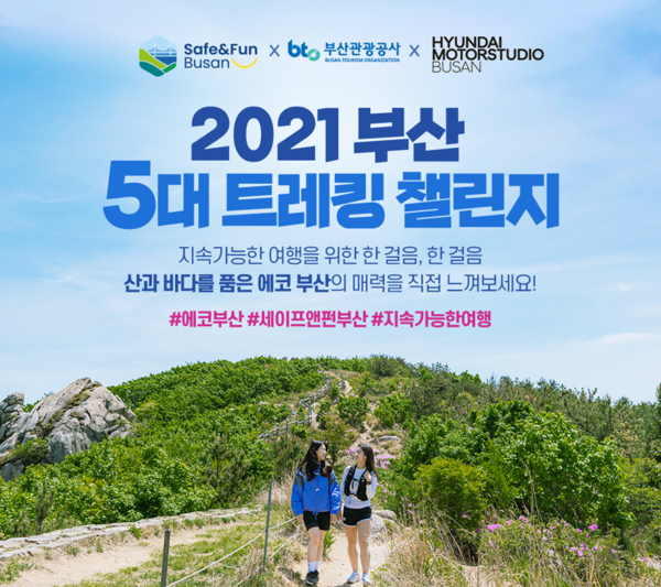부산관광공사는 5월 12일부터 8월 8일까지 '2021 부산 5대 트레킹 챌린지'를 진행한다.