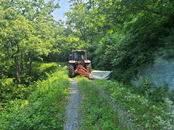 군은 올해 트렉터와 임도관리원을 투입해 보은산 산책로, 주작산 휴양림 등 다중이용시설과 인접한 구간을 중심으로 38개소, 133km에 대해 풀베기 작업을 실시한다. 특히, 지난해부터 모우어를 장착한 트랙터를 활용한 결과 작업효율이 50% 이상 향상됐으며, 근로자의 작업환경 또한 개선된 것으로 나타났다.