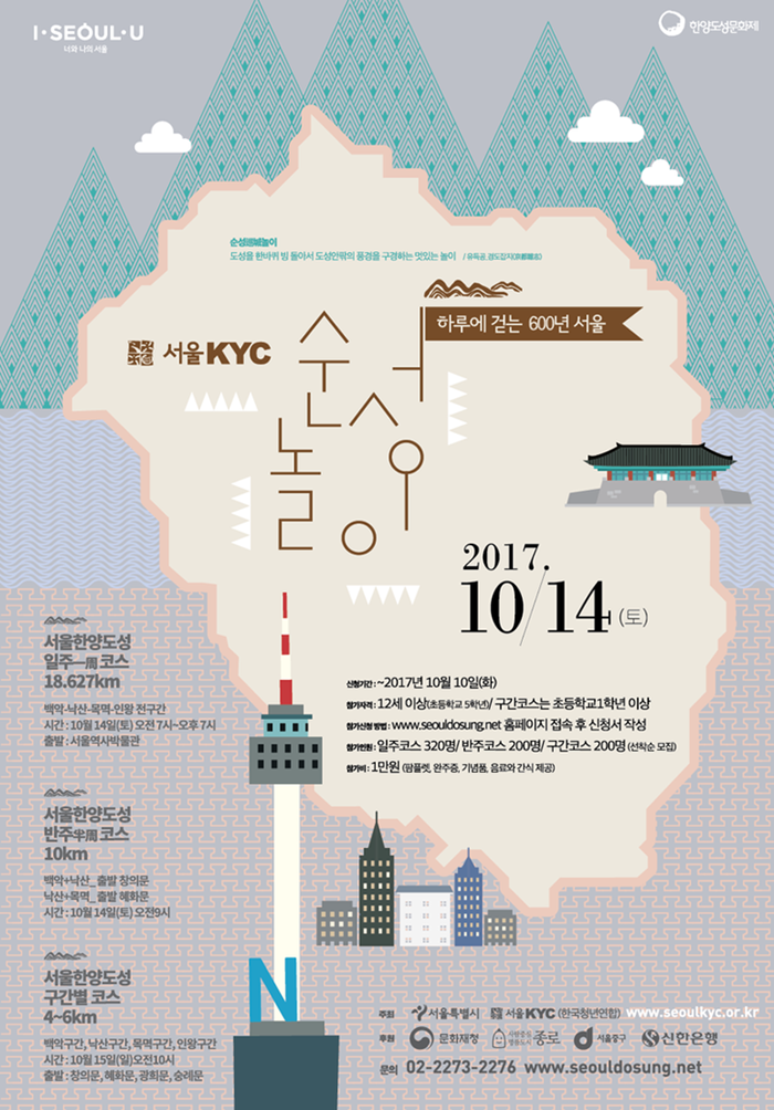 기타 문의 사항은 서울KYC 사무국 02-2273-2276 / 02-2273-2240 으로, 참가신청은 순성놀이 홈페이지(www.seouldosung.net)에서 하면 된다.