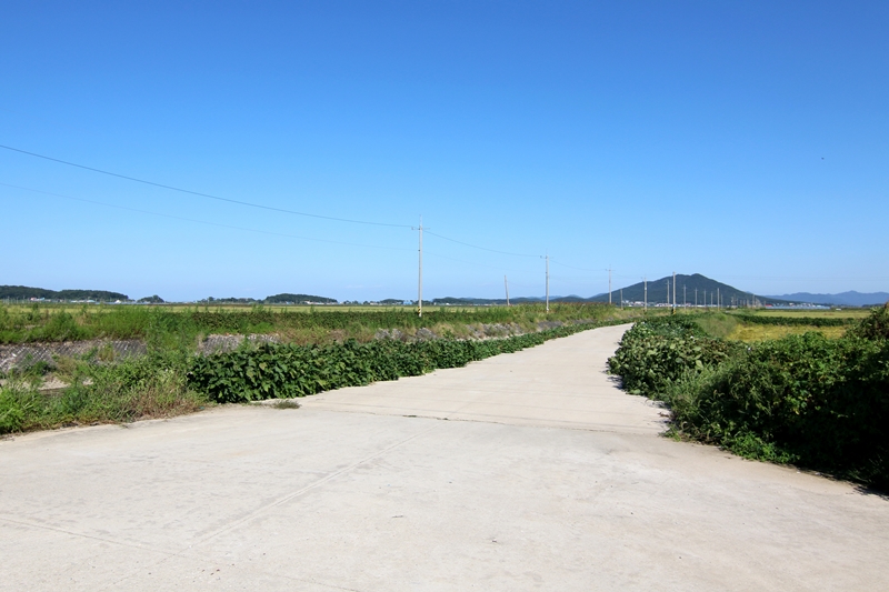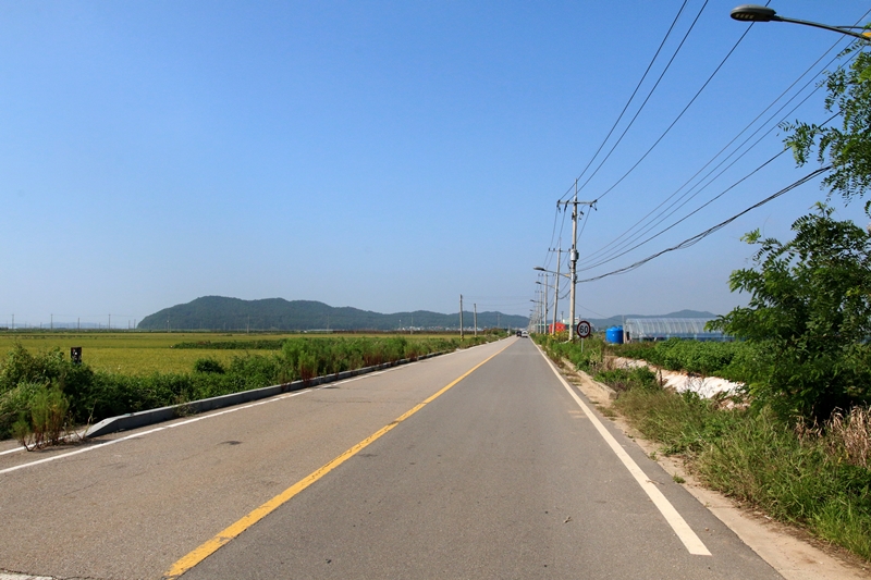 순서대로 간다면 미곡종합처리장에서 약 5~6km 이상을 걸어 난정저수지로 나아가게 됩니다. 이 길은 그늘이 하나도 없는 길인지라 햇빛이 내리쬐기 시작하면 상당히 체력이 소모될 수 밖에 없는 길입니다.