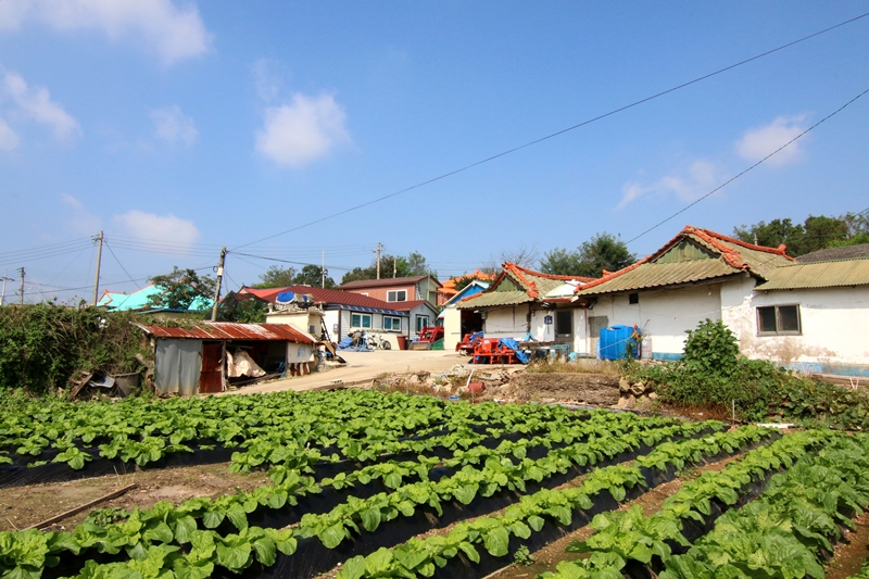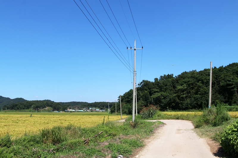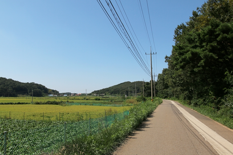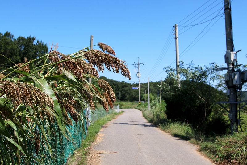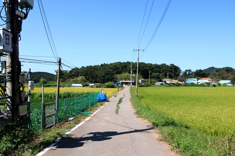 평화로운 농촌 풍경에 코스의 절반을 걸어온 발길은 힘든 줄도 모릅니다. 때를 놓친 닭의 울음소리가 마을에 울립니다.