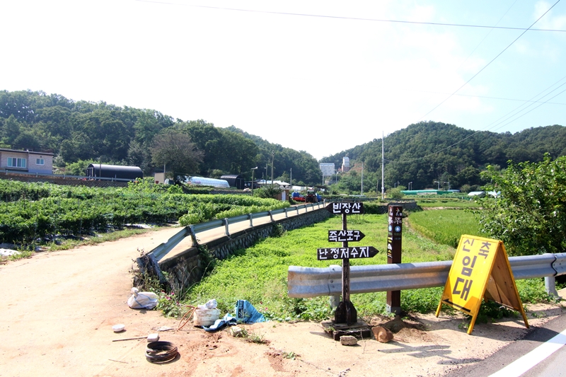 마을 입구의 갈림길에서 정면에 보이는 산자락으로 들어가도록 합니다.