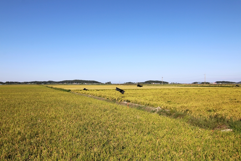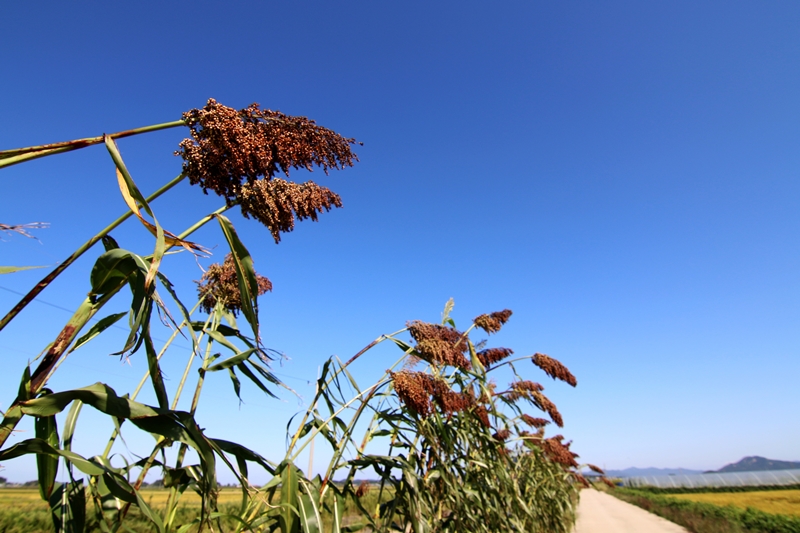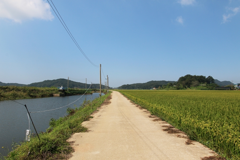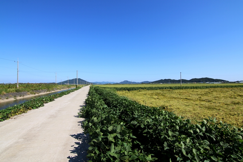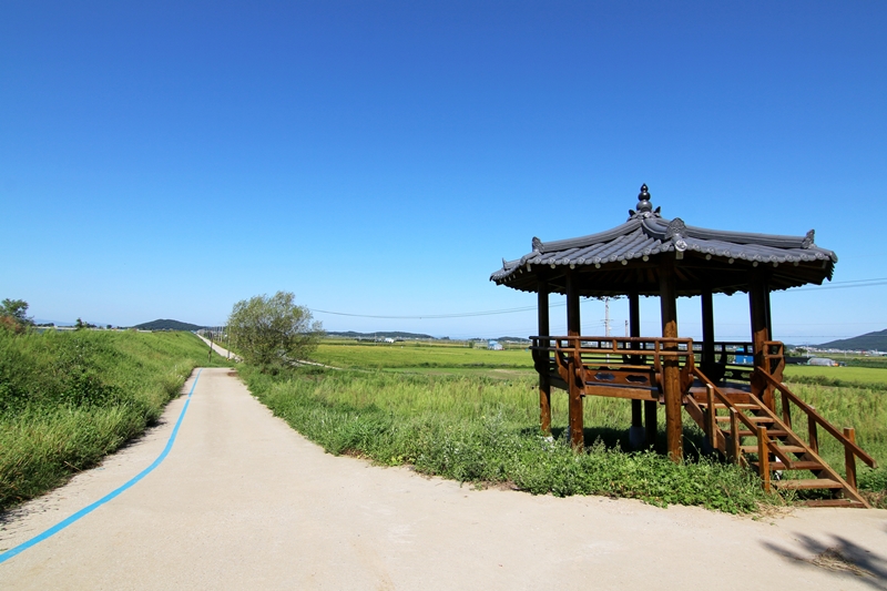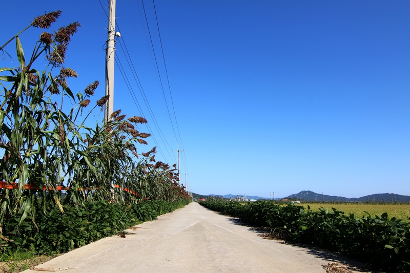 곡식이 익어가는 가을 들녘, 바람따라 낭창이는 수숫대의 몸짓따라 푸르른 저수지와 그 너머 바다의 넉넉함을 온 몸으로 만끽하며 걸어봅시다.