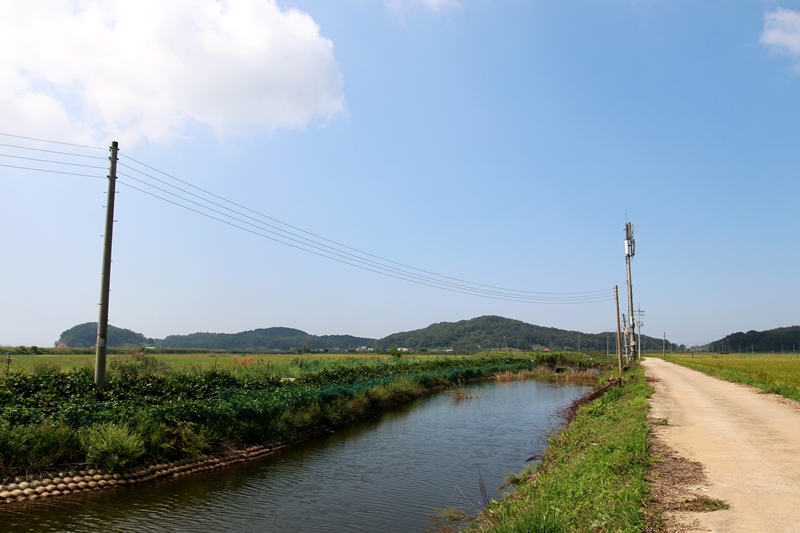 참고로 화남생가 가는 길에서 너른 평야인 조산평도 만나고 이전의 9코스에서도 교동도의 교동평야를 걸었습니다만 이 구간의 평야는 그동안 만나 본 나들길의 평야지대들 중에서 가장 너른 곳이라고 생각합니다. "교동도에서 1년에 나는 쌀의 양은 인천 시민들을 몇 년치나 먹여살릴 수 있다."는 자랑이 있는데요, 정말로 그렇게 느껴지는 풍경입니다.