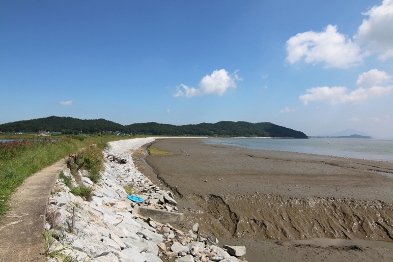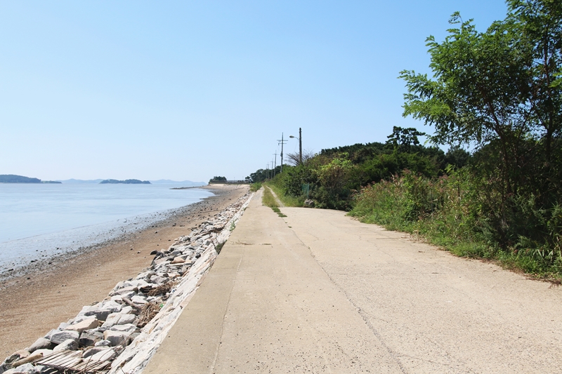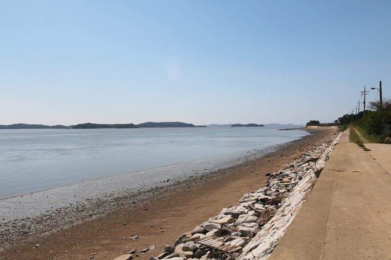 날씨가 흐리거나 어두운 날에는 앞이 안보이는 해무 속에 아른거리는 섬의 실루엣과 갯벌 위에 놓인 어구가 주는 쓸쓸함이 걷는 이의 감수성을 자극하지요.