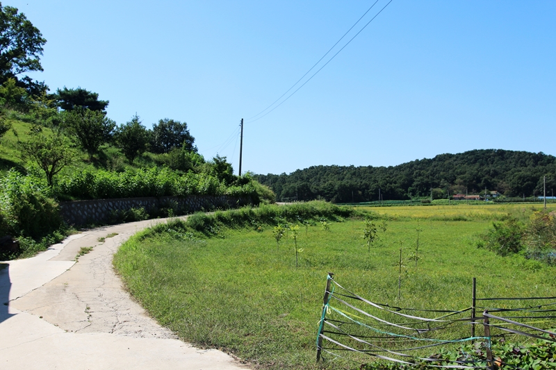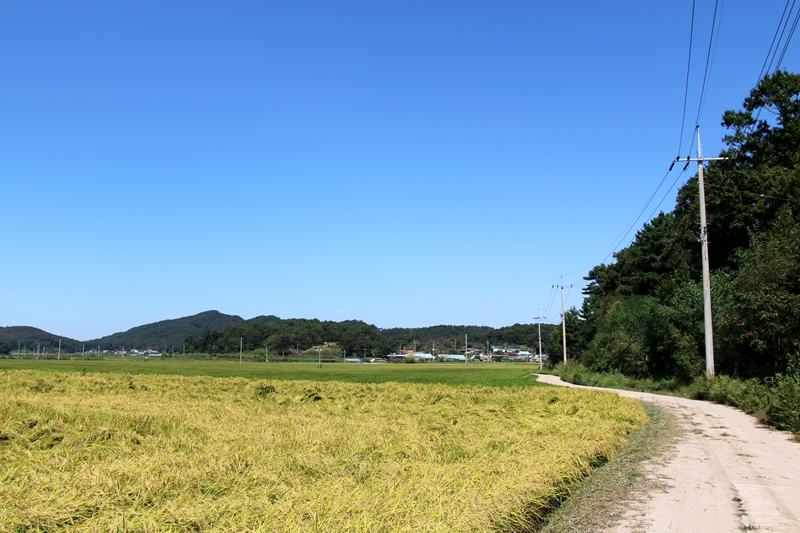 너른 풍경을 따라 저 멀리 동산리 마을이 보입니다.
