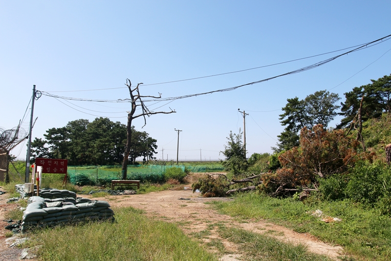 걷기 좋은 제방길이 어느새 군사시설인 철책으로 가로막힙니다.