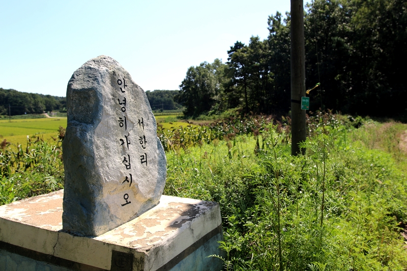 좌측으로 난 농로를 따라 맞은 편 산기슭으로 올라오니 서한리와 동산리의 경계 표지석이 나타납니다.