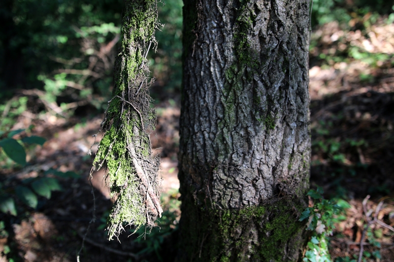 세월을 한 겹 입은 나무, 그 세월이 만든 표피가 몸에서 떨어져 나온 모습입니다. 이끼와 덩굴, 나무껍질로 만들어진 그 외피자락이 매달린 정경은 경이롭기까지 합니다.