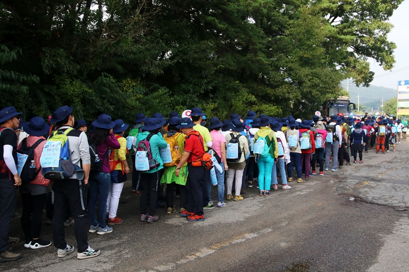 남녀노소 다양한 참가자들이 걷고 또 걷습니다.