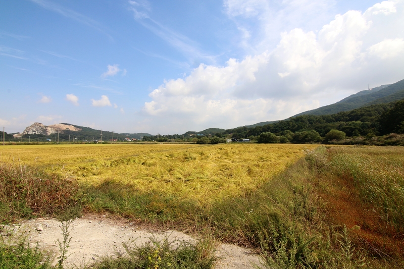별립산 자락 밑, 인화리의 황금벌판이 펼쳐집니다.