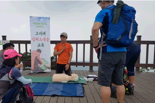 김경출 국립공원관리공단 안전방재처장은 “심정지를 발견한 동반자나 주변 탐방객이 신속하게 심폐소생술을 하면 생존율이 높아진다”고 말했다.