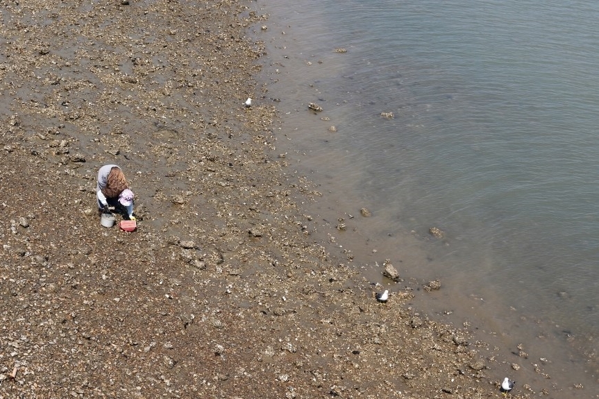 고운 모래사장으로 유명한 해수욕장이지만 썰물때에는 갯벌 체험도 할 수 있다.