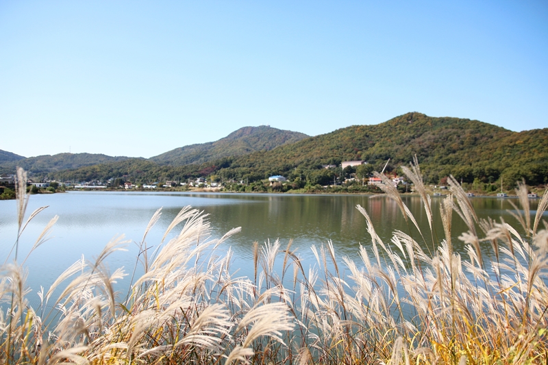 잔잔한 물결, 남산과 고려산 자락이 어우러진 풍경속에 긴 제방을 걷는 맛이란 모름지기 '이래서 걷는구나'하는 감탄사가 나올 정도로 가을 트레킹에 제격이다.