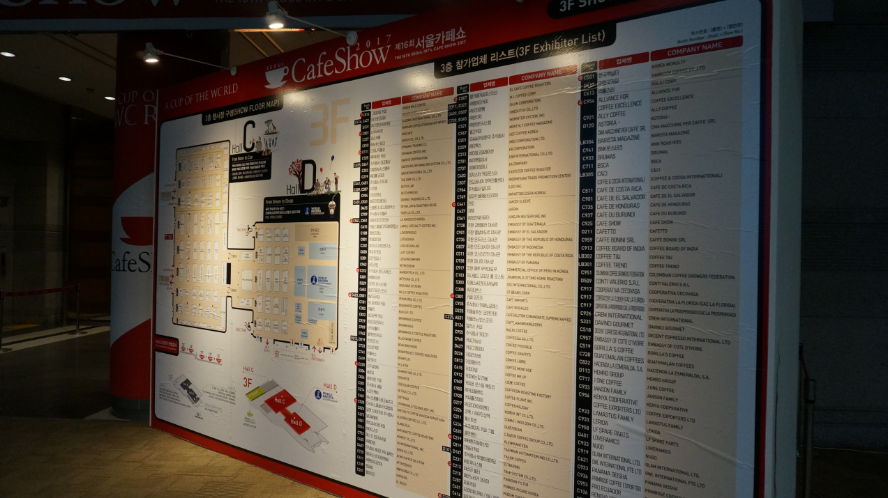 코엑스 전시관 1층의 A/B 관은 주로 각종 디저트 및 카페관련 창업정보, 부자재 중심으로 꾸려졌고, 3층인 C/D관은 월드 바리스타 챔피언십 경기장을 비롯해 에스프레소 머신과 로스터 기기등의 제조, 판매 및 유통사, 유명카페, 도소매업체 등으로 꾸려졌다. 9일과 10일은 주로 B2B 고객을 대상으로 행사가 이루어져 C/D관이 성황을 이루었다. 11일과 12일 주말은 개인고객에 포커스를 맞춘 행사가 진행되므로 A/B관이 매우 혼잡할 것으로 예상된다.