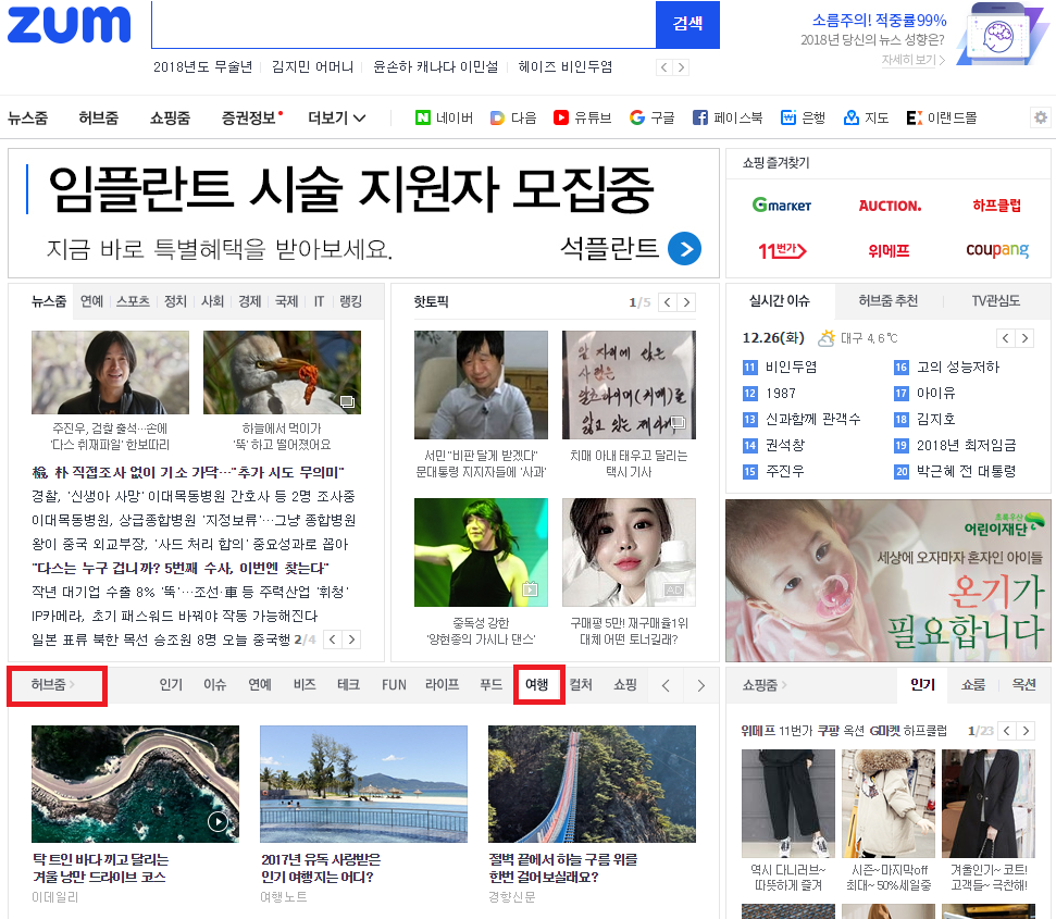 포탈사이트의 메인은 하단 '허브줌 > 여행'탭에 노출될 예정이고(http://zum.com),