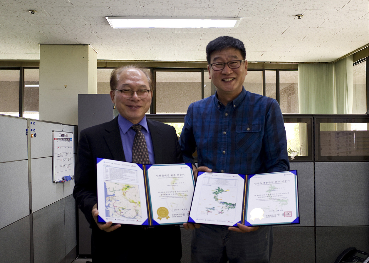 인천시 계양구에 사시는 박영식씨가 인천녹색종주길 60㎞와 인천둘레길 120㎞를 모두 완주하고 인천시로부터 1호 완주 인증서를 받았다.