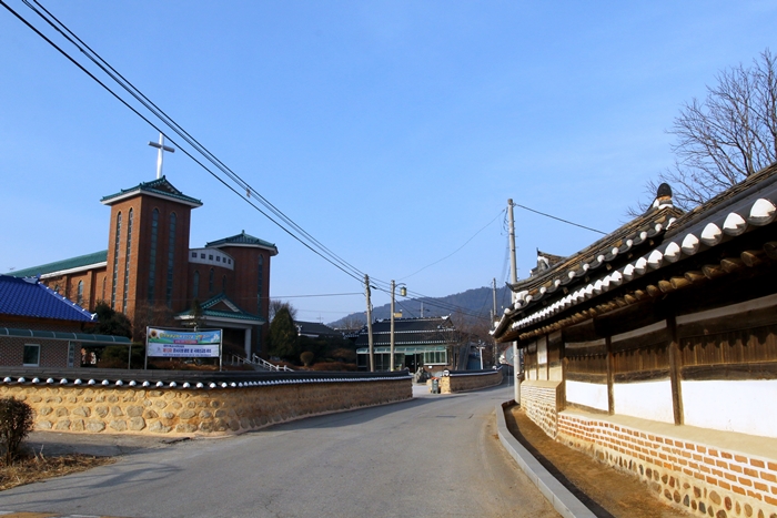 이 한적한 농촌마을은 옛 정취가 그대로 남아있다. 기와를 얹은 집들과 세월을 그대로 맞은 담장이 걷는 이를 반긴다. 동네 개에게는 낯선 이의 방문이 영 마음에 들지 않는 듯 하다. 온 동네가 떠나가라 짖어대는 검둥개, 그 서슬에 놀라 해는 이미 정오를 지나고 있는데 수탉이 목청을 뽑아댄다.