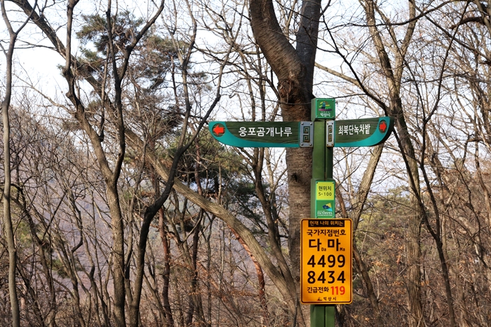 *표식이 약간 부족한 편이지만 크게 길을 잃을 염려는 없다. 본격적으로 산에 오르면서는 야생차나무 군락지와 입점리고분전시관, 웅포곰개나루 등 세 곳의 지점을 기억하고 표지판을 따라 가면 된다.