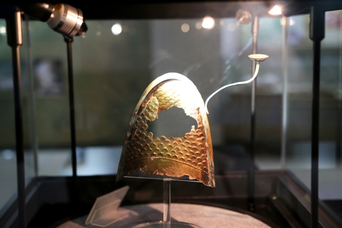 시선은 금동관모에 가서 멈춘다. 1986년 출토된 이 금동관모의 무늬가 주는 수려함은 신라의 관모와는 분명히 틀리다. 신라의 관모가 여러 금동판을 덧대어 보기에도 화려하게 만들었다면 백제의 관모는 여러개의 금동판을 덧대지않고 최소한으로 하되 그 금동판의 무늬 자체에 신경을 썼다는 느낌이다. 내 졸속한 감상이 그러하다.