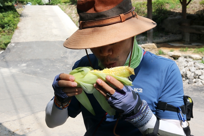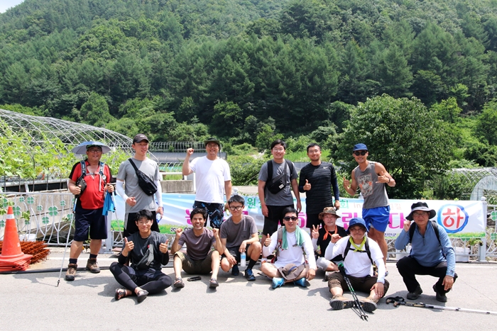 KHT 2018 in 진안고원길의 행사가 무르익는 가운데 7월 15, 16일 출발한 팀들이 완주를 마치고 들어오고 있다. 7월 15일 출발해 가장 먼저 105km를 완주하고 도착한 이는 천안에서 온 김자윤씨로, 평상시에도 꾸준한 운동을 해 온 걷기마니아다. 뒤 이어 월간 로드프레스에 해외 트레킹을 연재중인 이재홍씨와 산악회 동료인 전은미씨가 연이어 도착하였다.