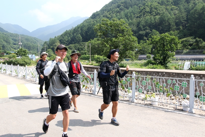7월 15일 출발해 가장 먼저 105km를 완주하고 도착한 이는 천안에서 온 김자윤씨로, 평상시에도 꾸준한 운동을 해 온 걷기마니아다. 뒤 이어 월간 로드프레스에 해외 트레킹을 연재중인 이재홍씨와 산악회 동료인 전은미씨가 연이어 도착하였다.
